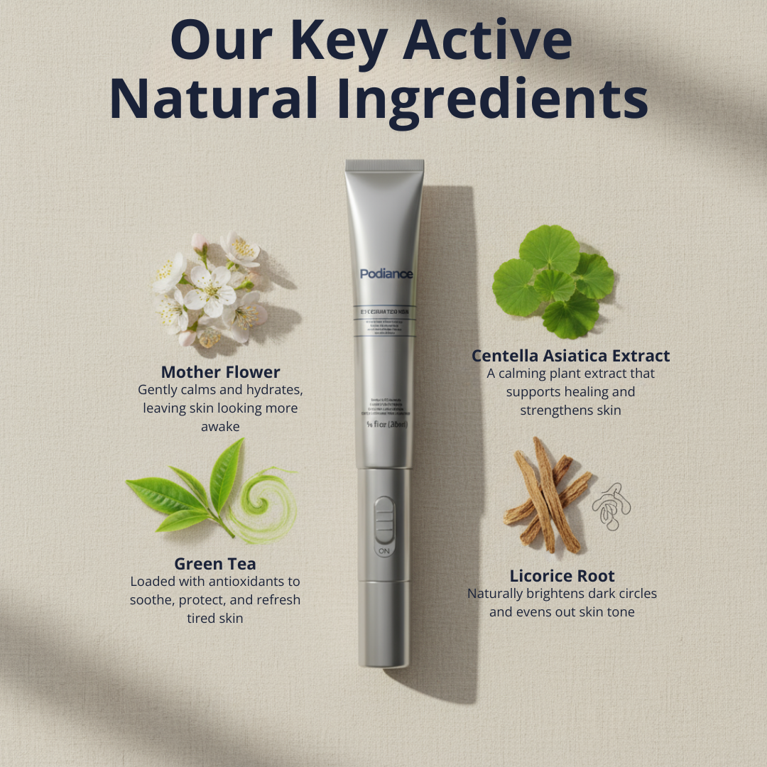 Our targeted solutions for eyes, face, and skin are designed to help you look sharper, feel more confident, and stay in control. Powered by premium ingredients and backed by real science, Podiance takes men’s self-care from basic to effective—without the extra steps.